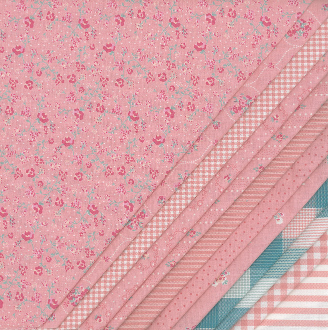 Ein Paket enthält 12 verschiedene Stoffe in fertigen Zuschnitten à 24 cm x 24 cm (zirka).